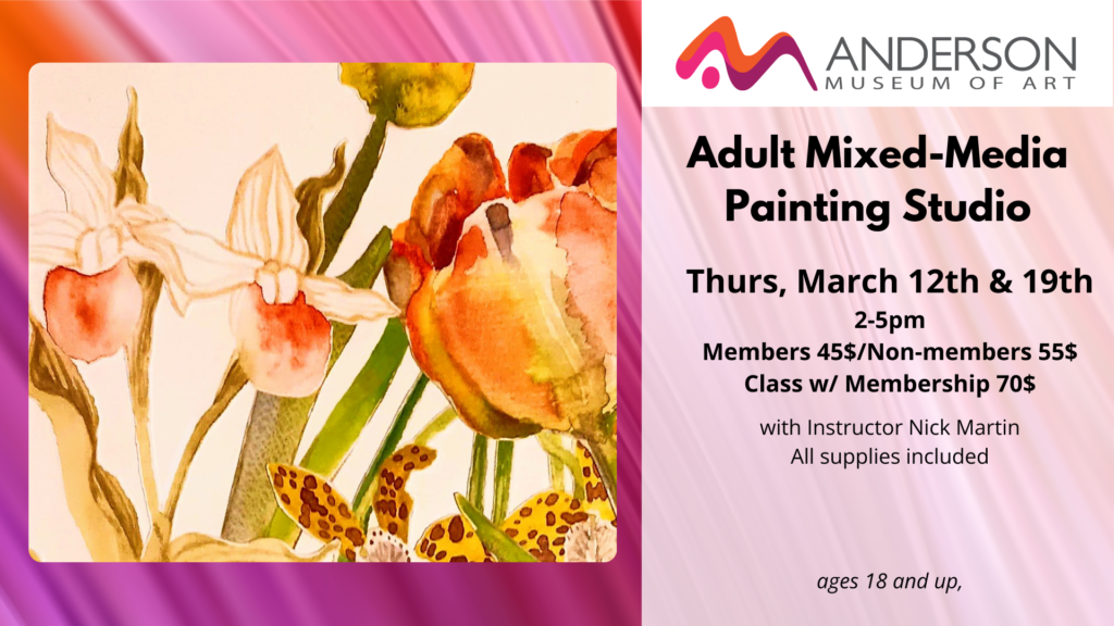 Full refunds will be given if AMOA cancels the class. Half refunds will be given before Sign Up Deadline which is typically one week before the class begins. No refunds will be given after the Sign Up Deadline.
