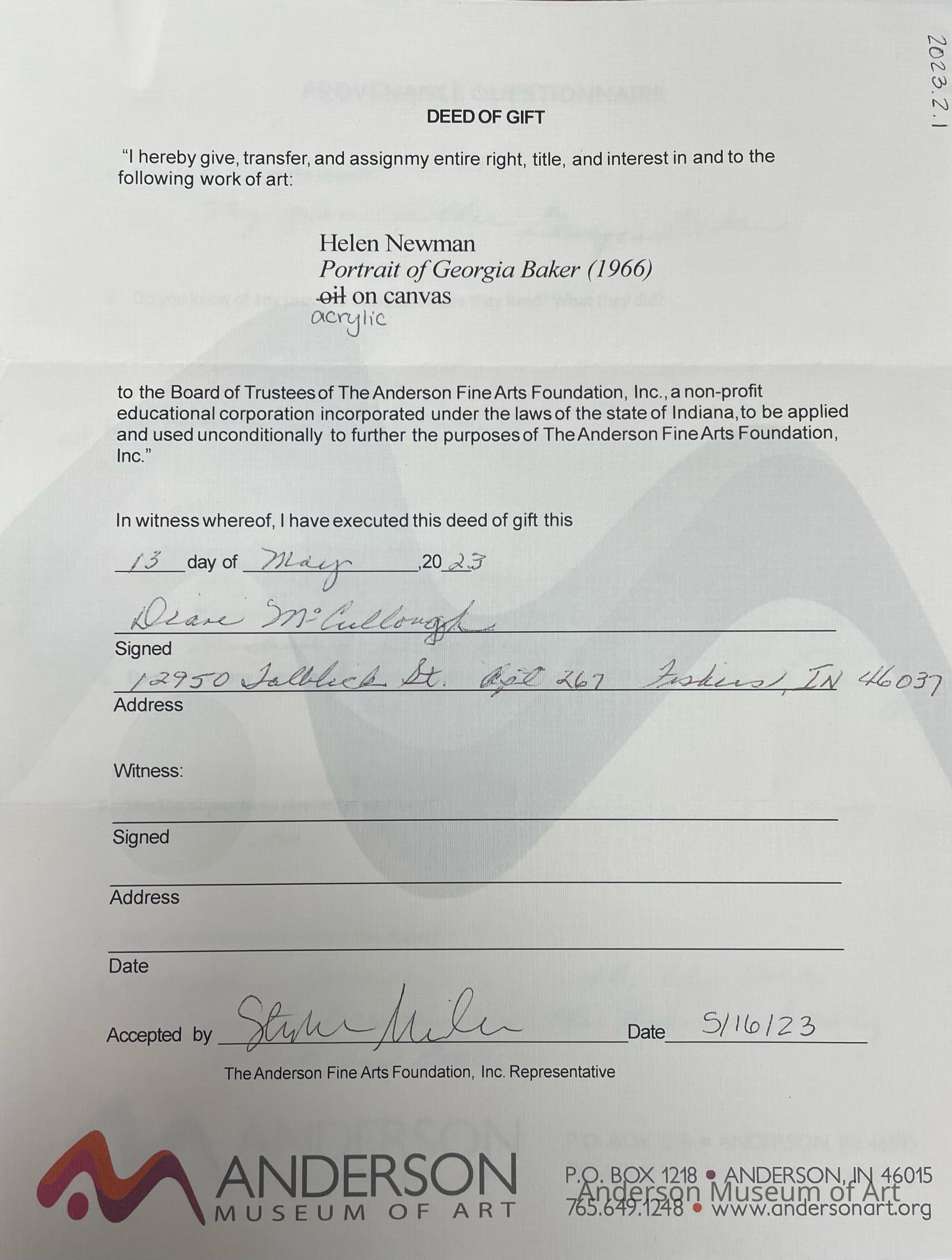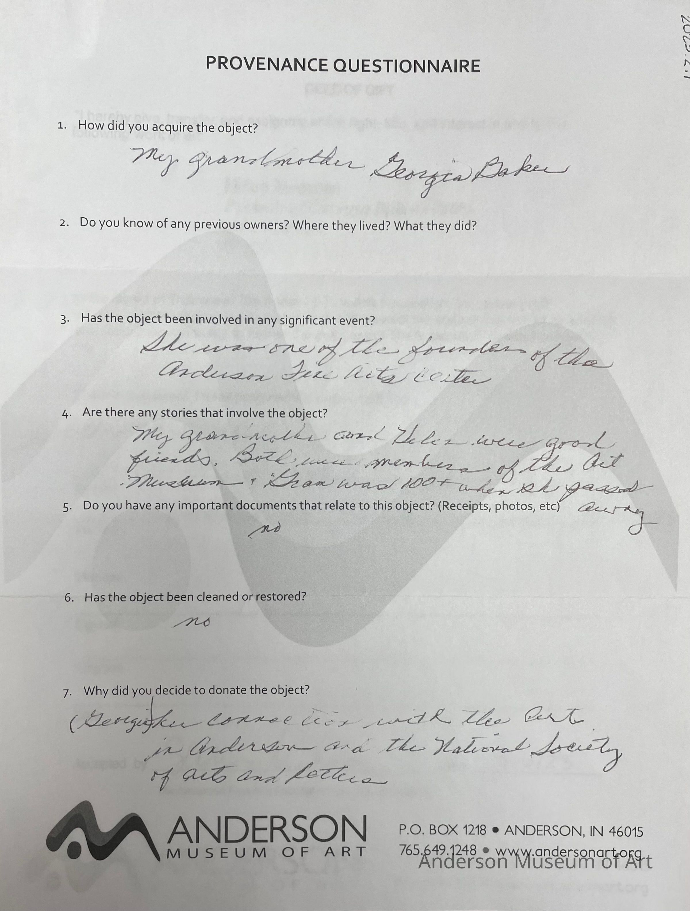 Gift of Diane McCullough (Subject's Grand-Daughter)