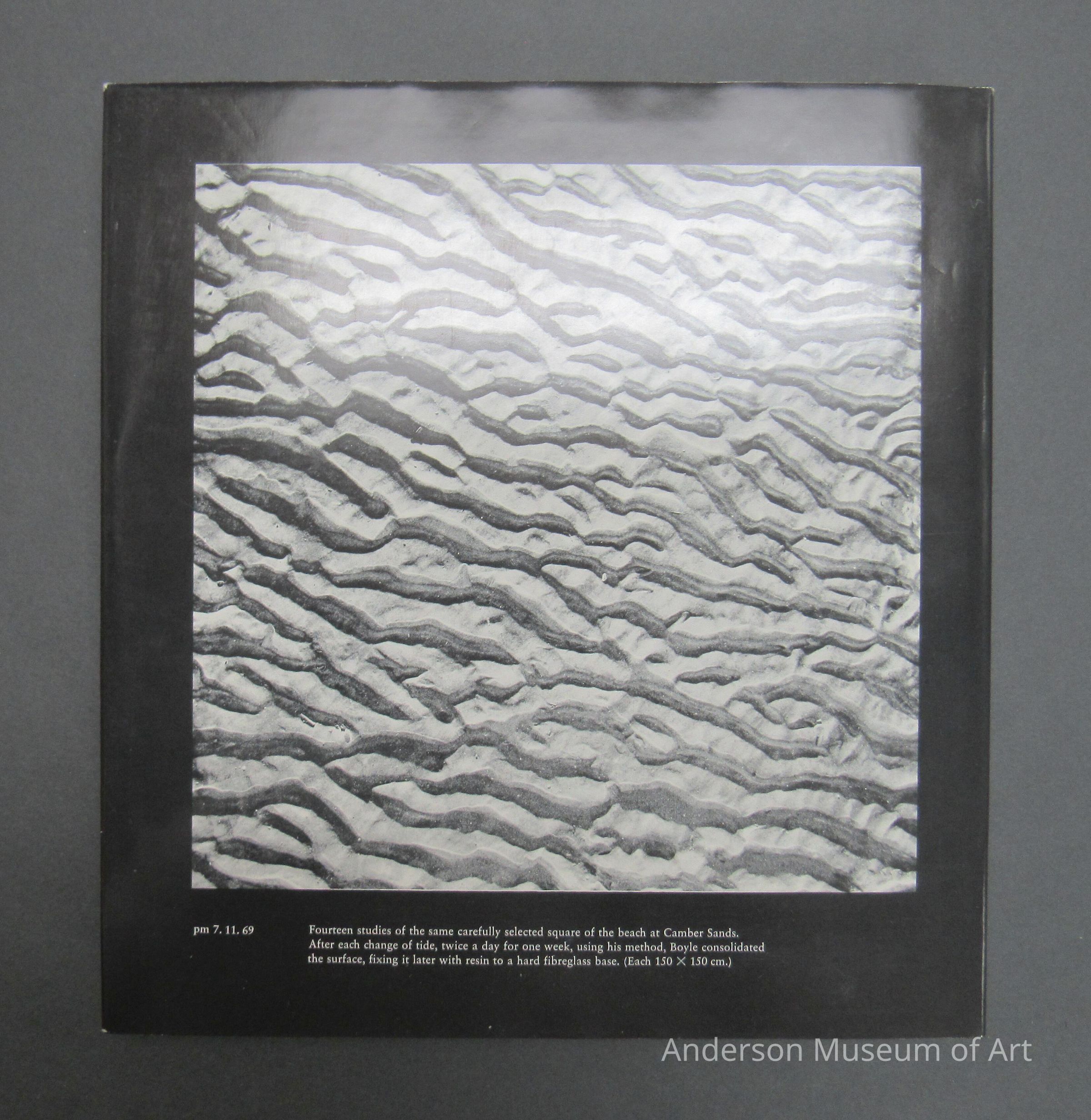 Journey to the Surface of the Earth. Approximately 270 pages offset. 42 color plates. Hardback edition with slipcase with original photograph by Mark Boyle. Signed and numbered. Approximately 250 pages offset, 50 color plates. There is an image on the front and the back both of designs in the sand. The front image also has two figures in the background. There is a print included that is black and white of an object at a very close microscopic level. Signed in black ink Mark Boyle. The book is black and slips into a black cloth covered slipcase 1978 edition of 4000.